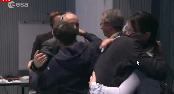 Qui sotto alcune scrennshot che ho catturato dalla diretta ESA, nel momento in cui il centro di controllo ha acquisito i dati di Philae e ha dato conferma del suo atterraggio sulla cometa 67P/Churyumov-Gerasimenko
